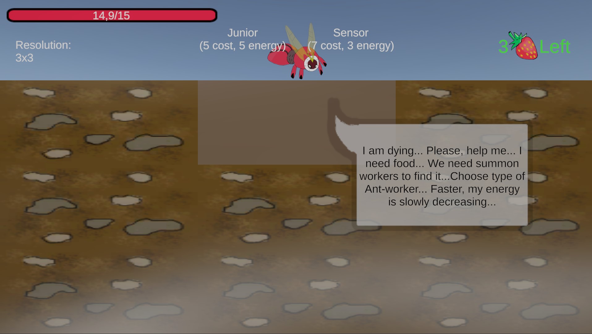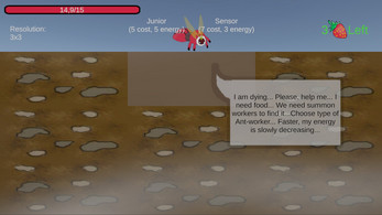 Our anthill is in danger... The food is running out, and our queen is barely holding on...